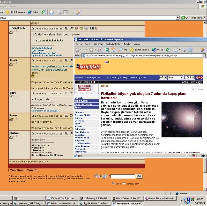 Joker Mesaj tarihi: Temmuz 20, 2005 Konuyu açan Mesaj tarihi: Temmuz 20, 2005 ben giriyorum :I[signature][hline]Boşuna Yazımda İmla Kuralı aramayın Bulamazsınız.