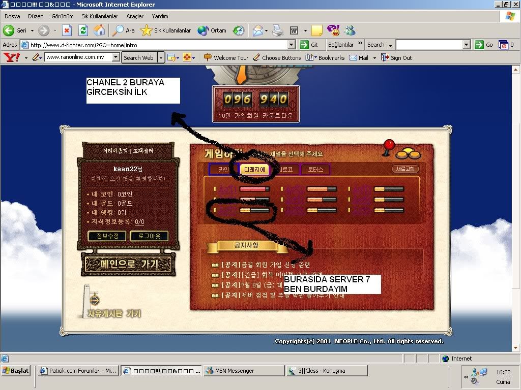 BeIlow Mesaj tarihi: Temmuz 8, 2005 Konuyu açan Mesaj tarihi: Temmuz 8, 2005 ehehhe sakin ol :) site filan hacklenmedi bazen bizim yurt disi hostlardan dolayi parliyor :P simdi bu oyuna girmek için yapman gerekenler ; 1. orda kssn residence number yeri var ya hani onun için bana ö.m at sana bi residence number yolliycam oraya onu yazip giris yapcaksin ... 2. Daha sonra islemleri tamamlayip aktif ettikten sonra oyuna girmek için bekliyceksin çünkü bugün giremezsin... Close beta oldugu için sadece sabah 10 dan aksam 16 ya kadar açik serverlar :) 3. Oyuna girmek için ilk önce siteye girceksin orda sevrer barlar var.. Ordan 2. siradakini seçiceksin.( nerede diceksin ama girer girmez gözüküyor hemen) eger benimle oynamak istiyorsan chanel 7 deyim ordan sitesinden girip tikliycaksin siteden patch yapiyor kasiyor bazen mozilla firefox filan olmasin direk explorerdan indir patchi sonra otomatik giriyor. Sürekli o sekilde giriyorsun.. 4. Eger acc açmakta sorun yasarsan ö.m atiyorsun sana acc açiyorum :)[signature][hline]Knight Online oyniyacagima, evcilik oynarim daha zevkli ... [i][b]