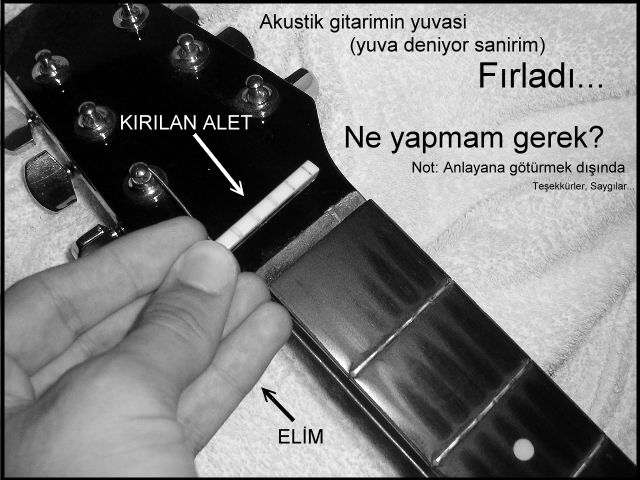 sir Mesaj tarihi: Eylül 10, 2005 Mesaj tarihi: Eylül 10, 2005 panikleme :) benim de eski klasik gitarın başına gelmişti aynısı, çok sağlam bi yapıştırıcıyla, dikkatli bi şekilde, kaydırmadan yapıştır, sonra etrafını sıkıca bağla ve yapıştırıcı kuruyana kadar bastır. ancak çok fazla yapıştırıcı sürersen de yükseltmiş olursun, aman dikkat diyim :)[signature][hline]Mnye etoh nadoh kahk zoobee v zadnetze.