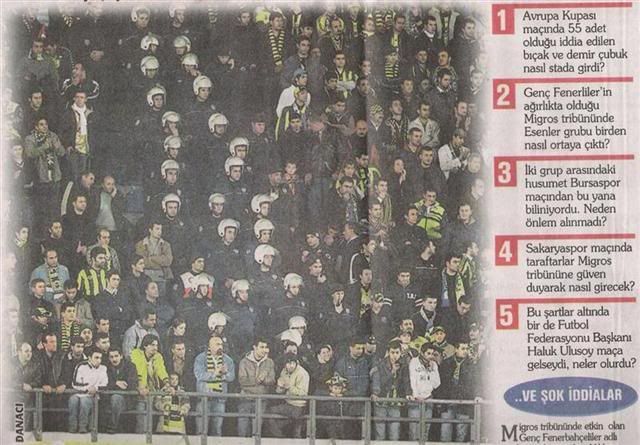Fistan Mesaj tarihi: Şubat 16, 2007 Mesaj tarihi: Şubat 16, 2007 gazete kendi sormuş kendi cevaplamış, iddia'dan öte bişi değil. öle gazetecilik yapıom diye sıkıyolar işte. millette yiyor bunu. o polislerin durdugu yer merdiven. polislerin sucu merdiveni kapamıslar koridor şeklinde açacakları yere. yoksa iki grup taraftar falan yok orda.