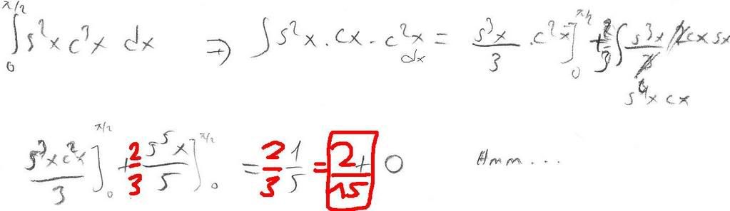 MrLevie Mesaj tarihi: Haziran 4, 2007 Mesaj tarihi: Haziran 4, 2007 integral 0 dan pi/2 'ye; cos³x.sin²x.dx =? arkadaşlar ben inatla 1/6 buluyorum başkasını bulabilecek var mı? [ Mesaj 04 Haziran 2007, Pazartesi - 22:38 tarihinde, MrLevie tarafından güncellenmiştir ]
