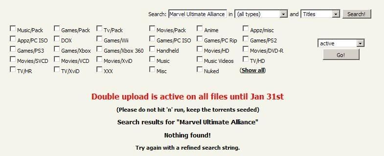dieevil Mesaj tarihi: Nisan 17, 2008 Mesaj tarihi: Nisan 17, 2008 Phobos said: Dün gece şans eseri torrentbyte'a üye olabildim ancak orada yaptığım tüm arama sonuçlarında aşağıdaki görüntüde görülen hatayı alıyorum. Görüntüdeki oyun için sınırlı değil bu olay, en basitinden diablo ile ilgili de hiçbir sonuca ulaşamıyorum :S Daha dün gece üye olduğum olduğum için upload ve download'um Sıfır. Hali ile ratio değerimde sıfır olarak duruyor. Aramalardan bir sonuç alamamanın bunlardan biri ile ilgisi olabilir mi yoksa search kısmını mı yanlış kullanıyorum :D Torrentbytes dosyaları cok kısa tutar .Yanı sallıyorum bundan 1 ay oncekı dızıyı bulamazsın kaldırıyorlar .Acıklaması nedır bılmem ama dusuncemde seeder ve lech'i dusunce sılıyor otomatık herhalde. Cok uzun zamandır uyeyım 150 gb a yakın upload (sanal up'ı yakalamıyor :D ) var oraya asırı derecede memlunum.Yakalabırsenız uyelık alın derım .