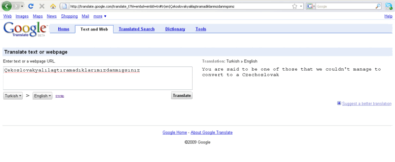 mascio Mesaj tarihi: Kasım 16, 2016 Mesaj tarihi: Kasım 16, 2016 Sinirsel yapay zeka eklenmiş. Gerçekten iyi çeviri yapıyor ama noktalama işaretleri hala çok önemli. Peşpeşe iki özel isim yanyana geldiğinde de biraz kafayı yiyor. Şemsipaşa Pasajı'nda sesi büzüşesiceler. The ones whose voice are shrivelerable at Semsi Pasha Passage.