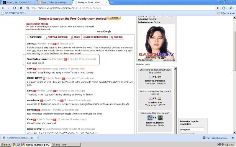 Sam Mesaj tarihi: Haziran 7, 2010 Mesaj tarihi: Haziran 7, 2010 said: Islam is dangerous - US - Voted for Turkey - Turkey (6 minutes 27 seconds ago) And it must be stopped. Support Israel! ben de tag'de failledim, bulaşıcıymış.