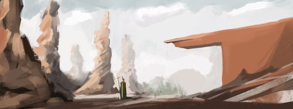 tharin_ Mesaj tarihi: Aralık 10, 2017 Mesaj tarihi: Aralık 10, 2017 Xunn, hikaye anlatımı konusuna katılıyorum ama dikkate alınacak çok mesele olunca onu erteledim. ejderhayı kaldırdım ama asdf. Detay konusunu da render çalışmalıyım biraz daha, dedigin gibi dag taş çizmek lazım. hatta ustalar outdoor painting tavsiye ediyor ama fotoğraftan da gelisilir herhalde. Şu ara kompozisyon, thumbnail vs çalıştım biraz onların sonucu bu çizim. bu ilk hali Daesu, figür bakiyorum. temel geometri için hampton ve loomis e baktım ama strüktürü az çok öğrendikten sonra biraz pratik gerekiyor herhalde. Sence fotoğraftan-resimden figür çalışmak yeterli mi, canlı figür şart mı? bunları hamptonın kafa dersinden sonra denemiştim