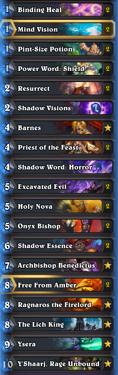 Fistan Mesaj tarihi: Ağustos 25, 2017 Mesaj tarihi: Ağustos 25, 2017 hırsız priest ile ilk seferde kestim ### thifest # Class: Priest # Format: Standard # Year of the Mammoth # # 1x (0) Circle of Healing # 2x (1) Crystalline Oracle # 2x (1) Mind Vision # 2x (1) Northshire Cleric # 2x (1) Potion of Madness # 2x (1) Power Word: Shield # 1x (2) Shadow Visions # 2x (2) Shadow Word: Pain # 1x (3) Kabal Courier # 2x (3) Mirage Caller # 1x (3) Shadow Word: Death # 2x (3) Thoughtsteal # 1x (4) Auchenai Soulpriest # 1x (4) Shifting Shade # 1x (5) Devour Mind # 1x (5) Faceless Manipulator # 1x (6) Cabal Shadow Priest # 1x (6) Holy Fire # 1x (7) Archbishop Benedictus # 1x (8) Free From Amber # 1x (8) Medivh, the Guardian # 1x (10) Mind Control # AAECAa0GDgjtAZACkwTSCtMK1Qr6sAKhtwKwvALRwQKZyALGzAKJzQIIHuUEywjXCvIMtbsCw8EC1cECAA== # # To use this deck, copy it to your clipboard and create a new deck in Hearthstone